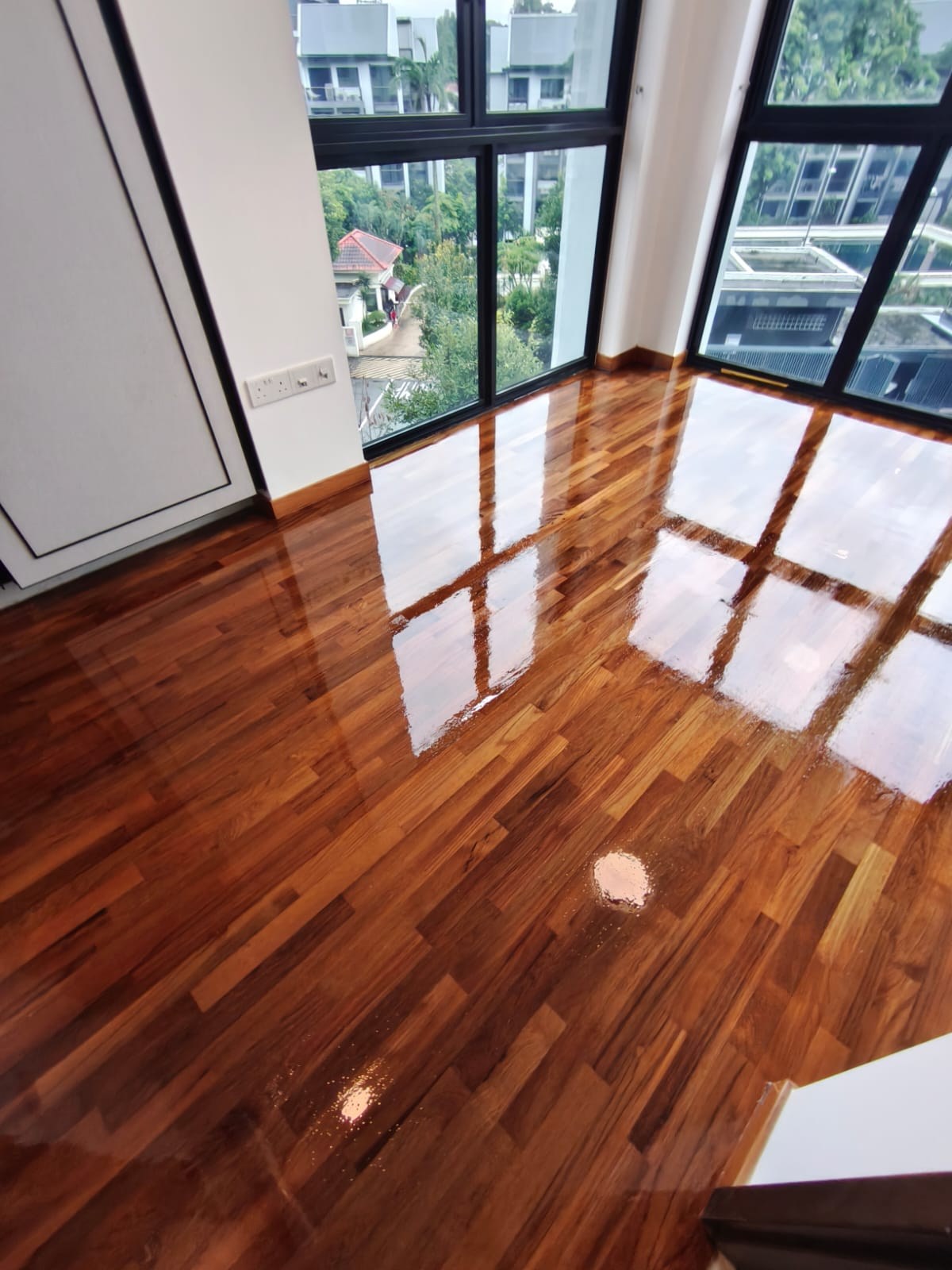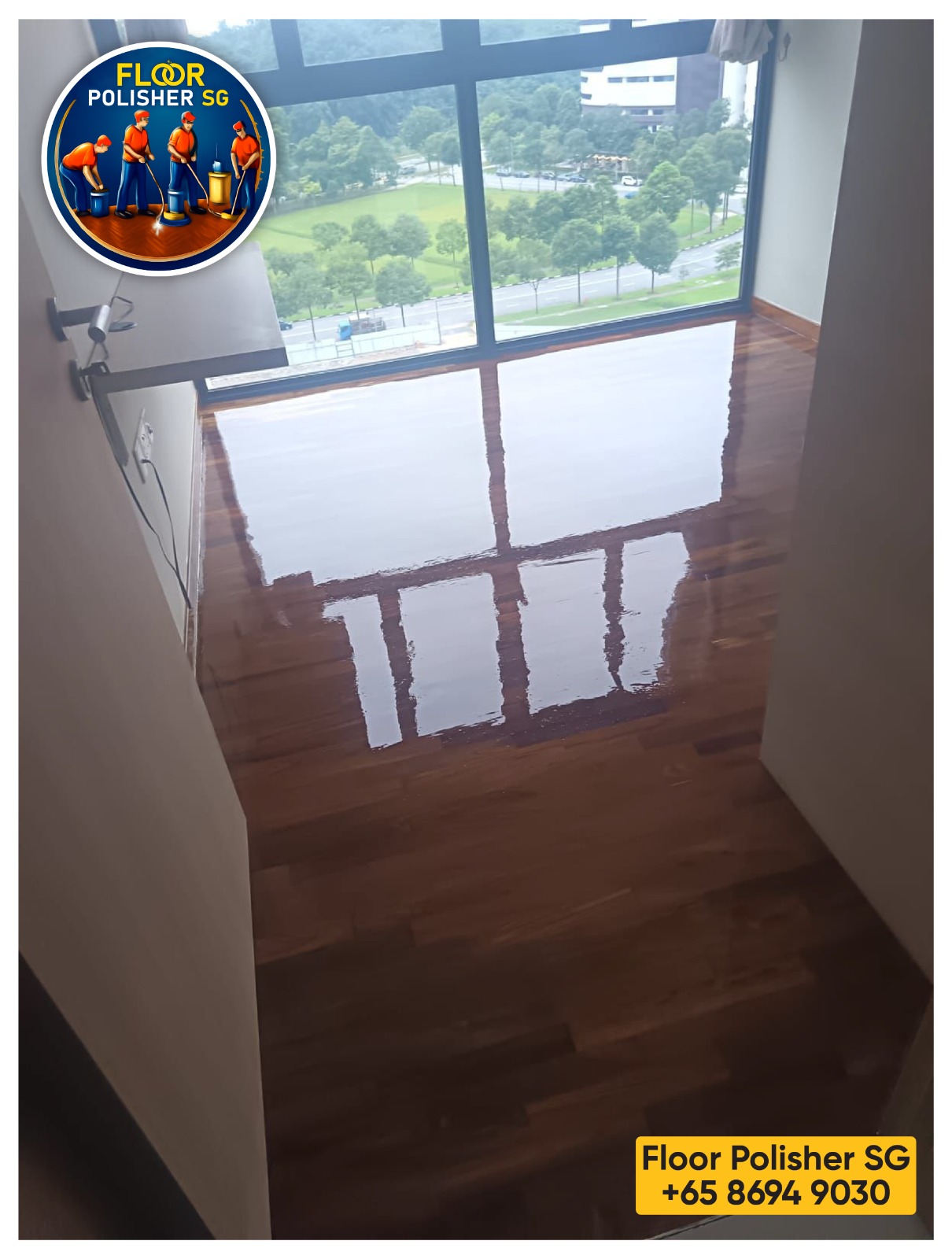 Standard oil-based varnish has a very strong odor that usually lasts for 1–2 days with adequate ventilation but is more cost-effective. Floor Polisher SG offers water-based varnish that has minimal odor, recommended if you are staying in the apartment.
